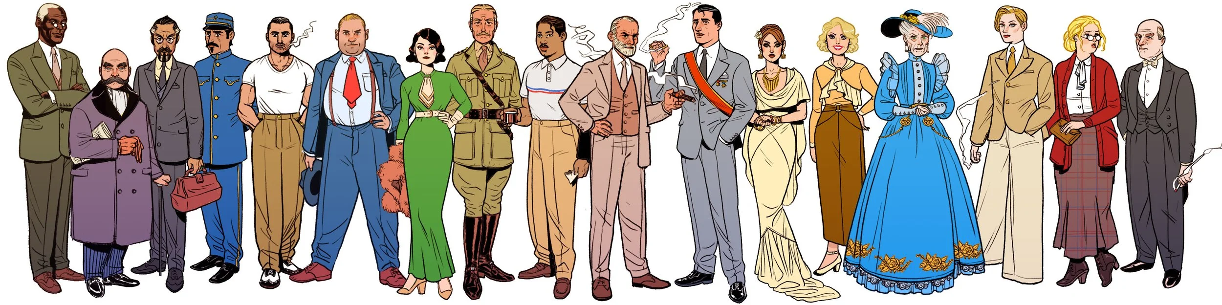 Agatha Christie’s classic murder mystery has an eclectic cast of characters, from working-class laborers and manservants to European royalty and nouveau riche. In designing these characters, including the iconic detective Hercule Poirot, I was in charge of bringing them to life in the pages and panels of the graphic novel.